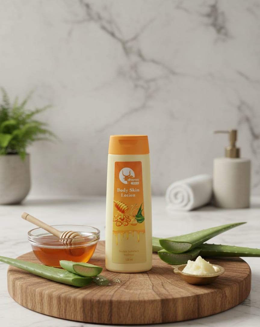Apply Panchgavya Moisturising Lotion all over the body often both or shower. Use daily, morning or evening. Additionally, Panchgavya Moisturising Body Lotion contains Aloe Vera Juice, known for its cooling and soothing properties. It supports skin regeneration and regulates skin moisture.Panchgavya Products Body Lotion